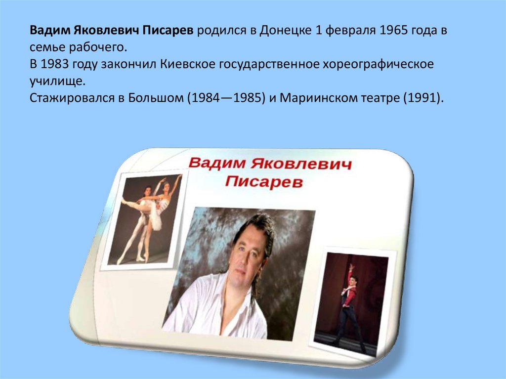 Вадим Яковлевич Писарев родился в Донецке 1 февраля 1965 года всемье рабочего.
