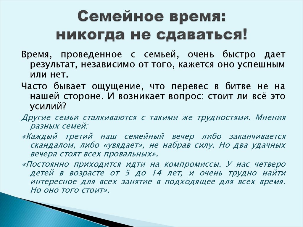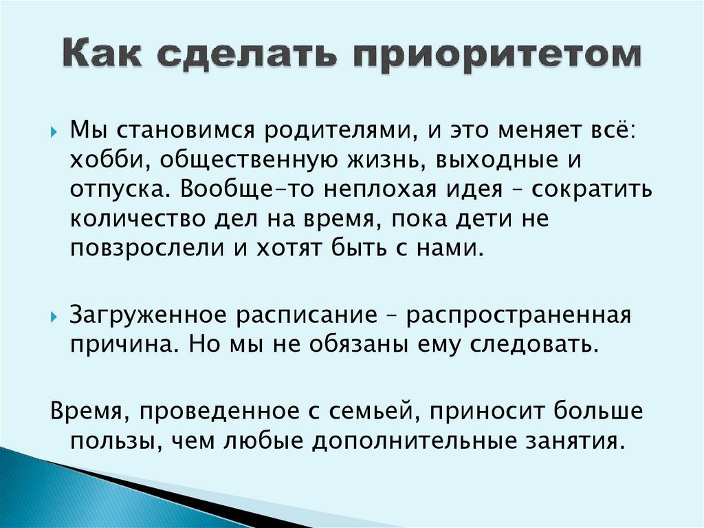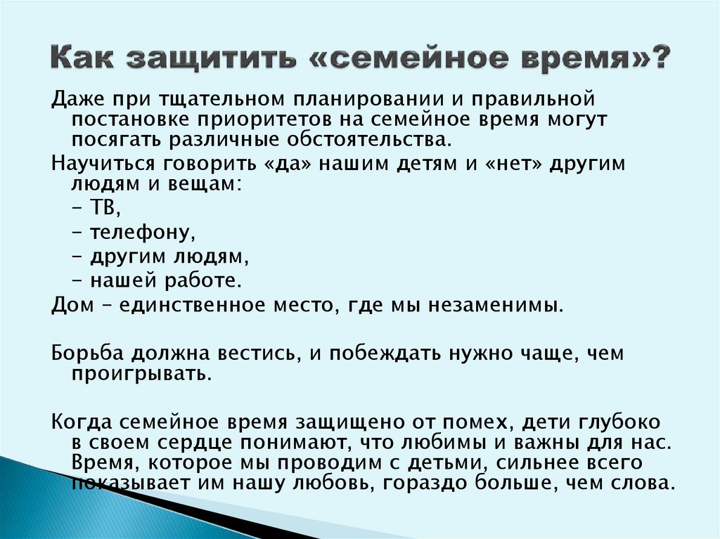 Даже при тщательном планировании и правильнойпостановке приоритетов на семейное время могут