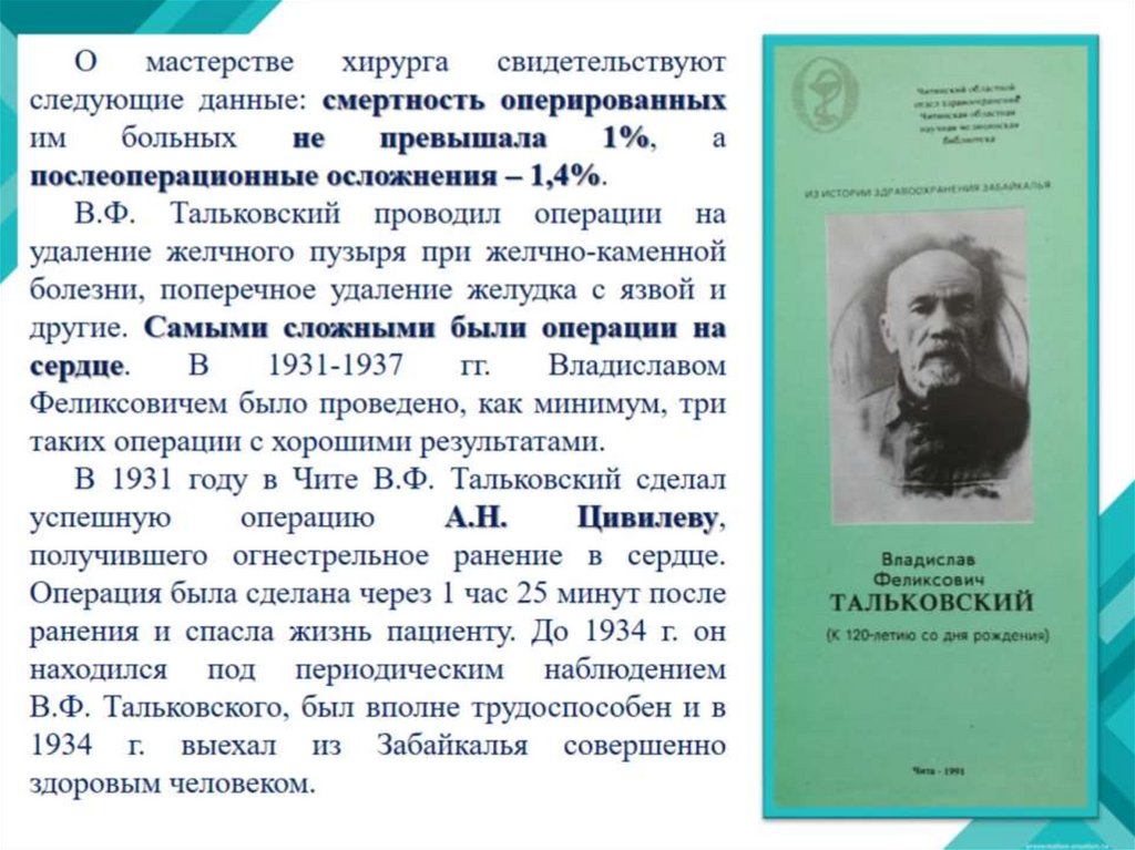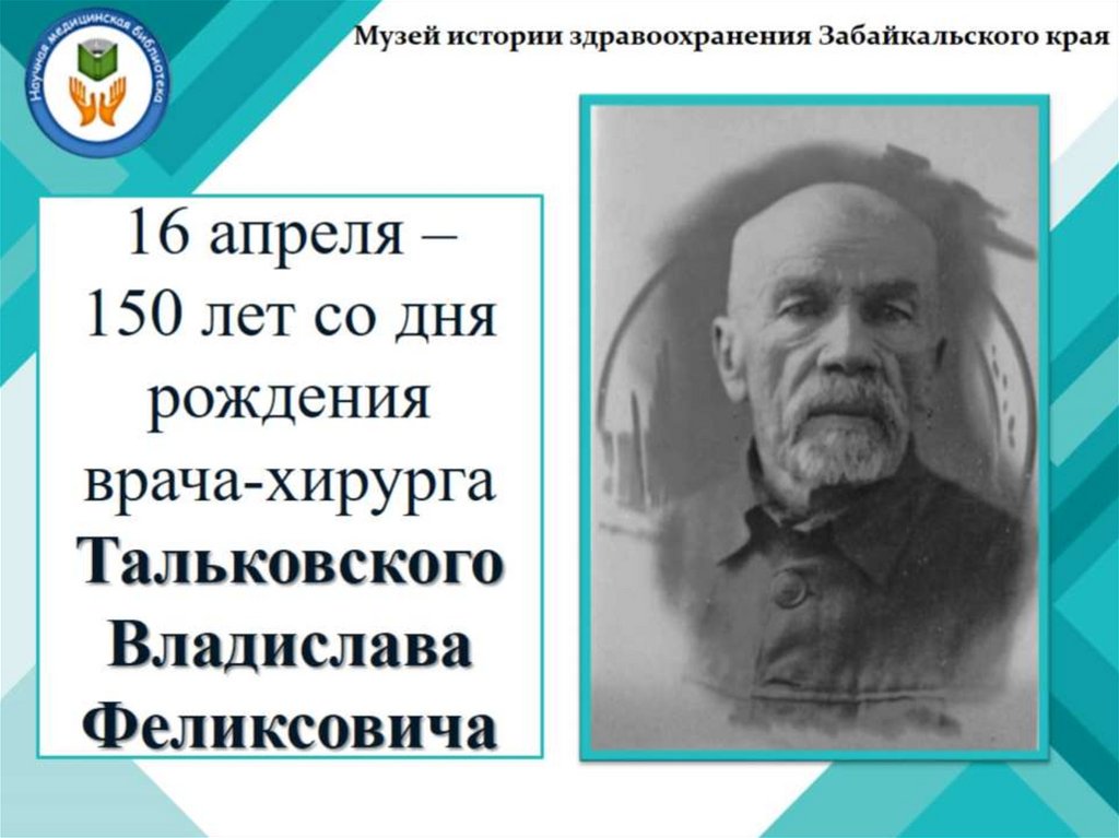 16 апреля - 150 лет со дня рождения врача-хирурга Тальковского Владислава Феликсовича