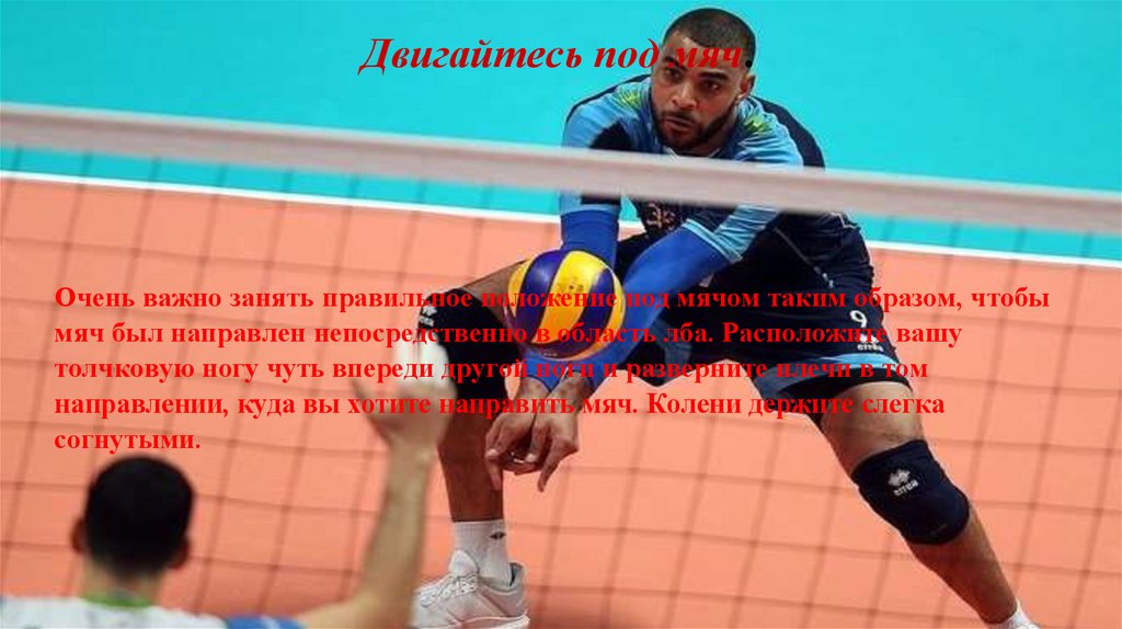 Двигайтесь под мяч.Очень важно занять правильное положение под мячом таким образом, чтобы