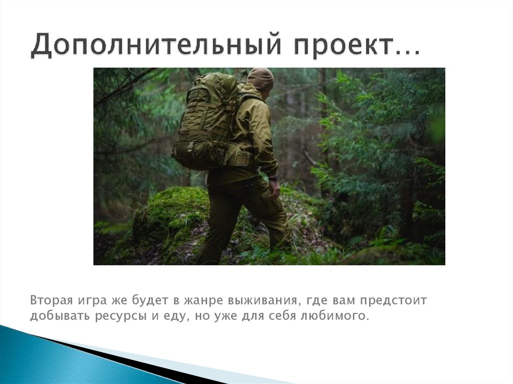 Вторая игра же будет в жанре выживания, где вам предстоитдобывать ресурсы и еду, но уже для себя любимого.