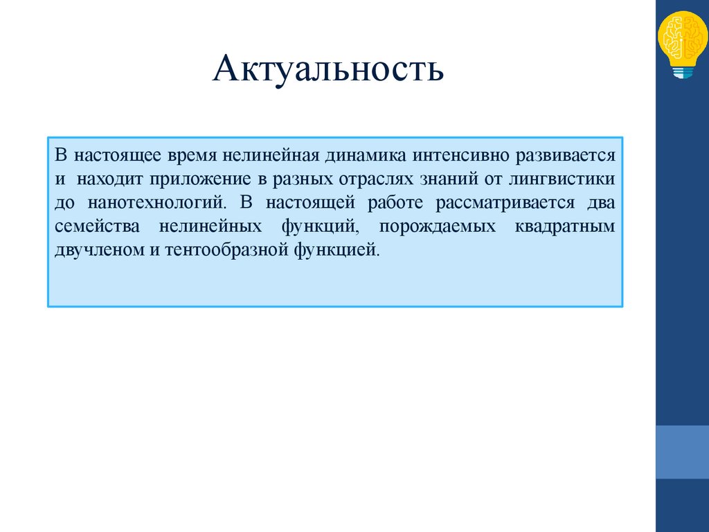 АктуальностьВ настоящее время нелинейная динамика интенсивно развивается