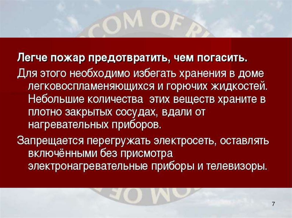 ПОЖАРЫ В БЫТУ,