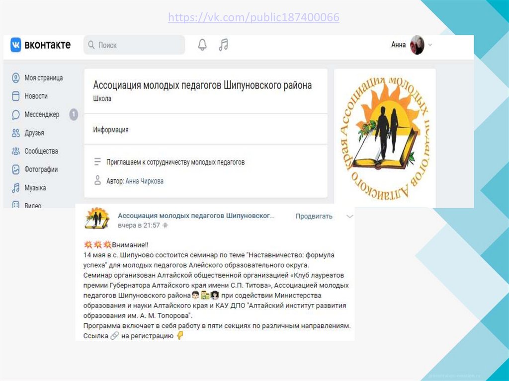 Ассоциация – это площадка для общения молодыхпедагогов друг с другом, для взаимодействия с опытными