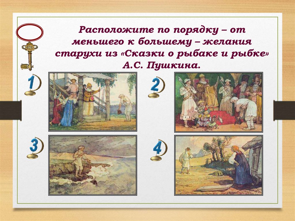 Расположите по порядку – от меньшего к большему – желания старухи из «Сказки о рыбаке и рыбке» А.С. Пушкина