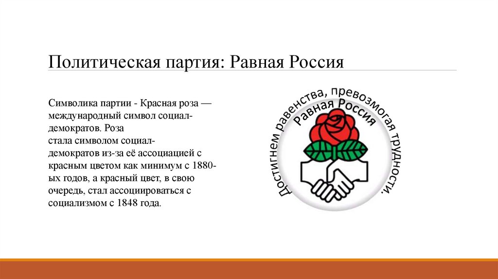 Политическая партия: Равная РоссияСимволика партии - Красная роза —