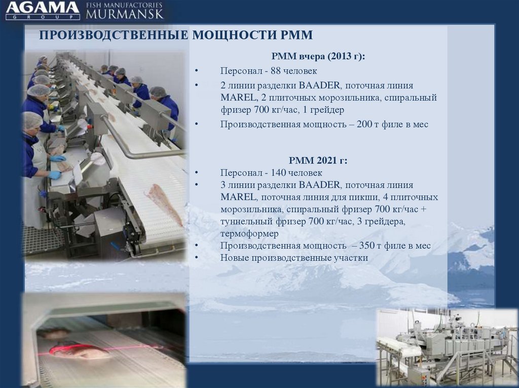 Производственная мощность – 350 т филе в мес