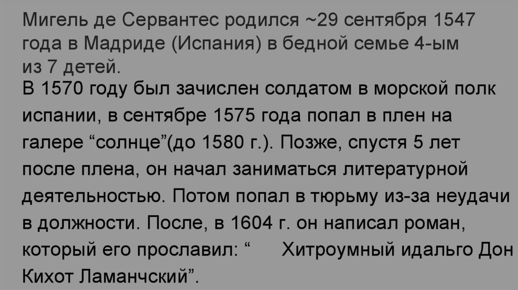 Мигель де Сервантесдоклад сделал Алешин Федор, 7-ж класс