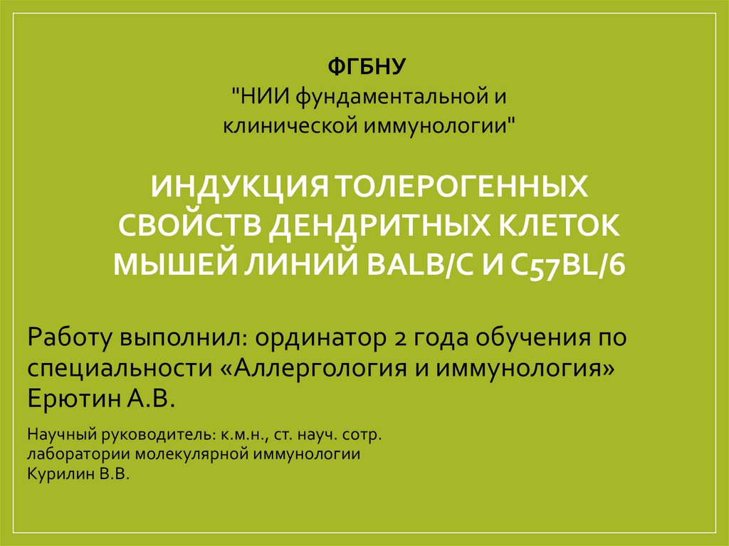 Индукция толерогенных свойств дендритных клеток мышей линий BALB/C и C57BL/6