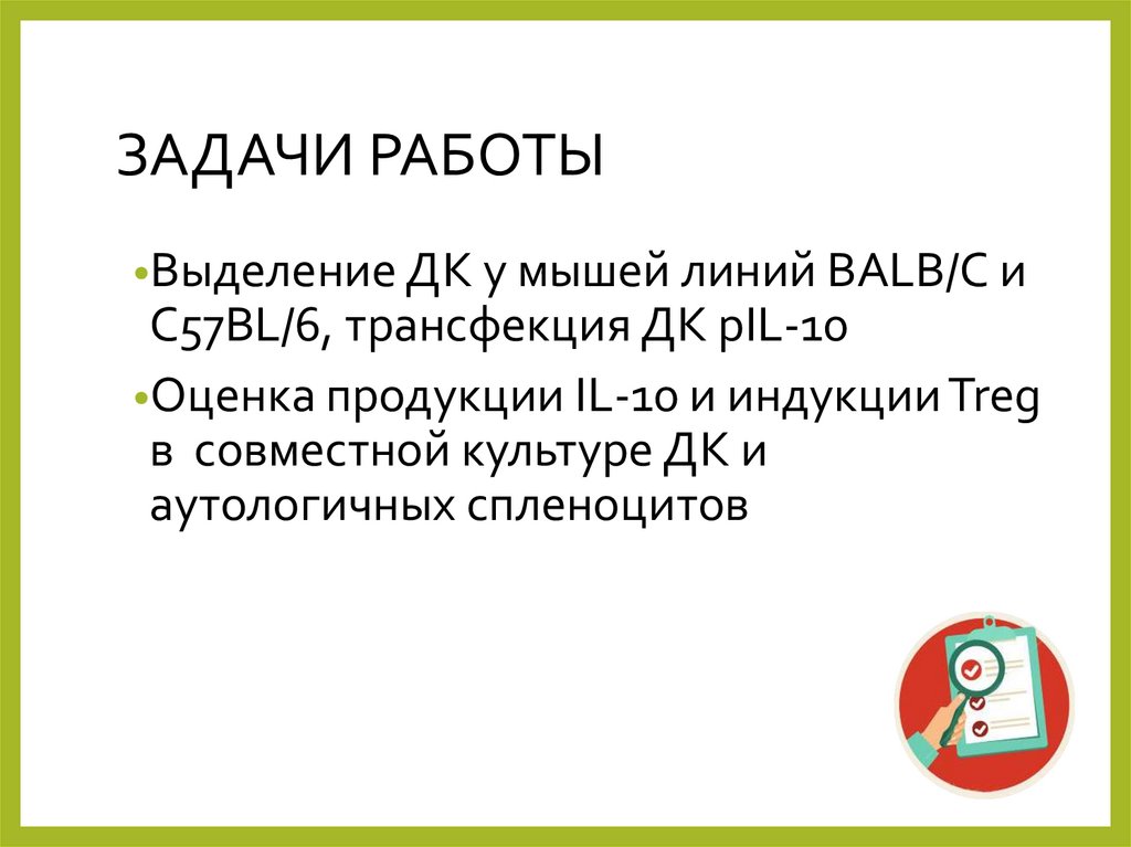 ЗАДАЧИ РАБОТЫ•Выделение ДК у мышей линий BALB/C и