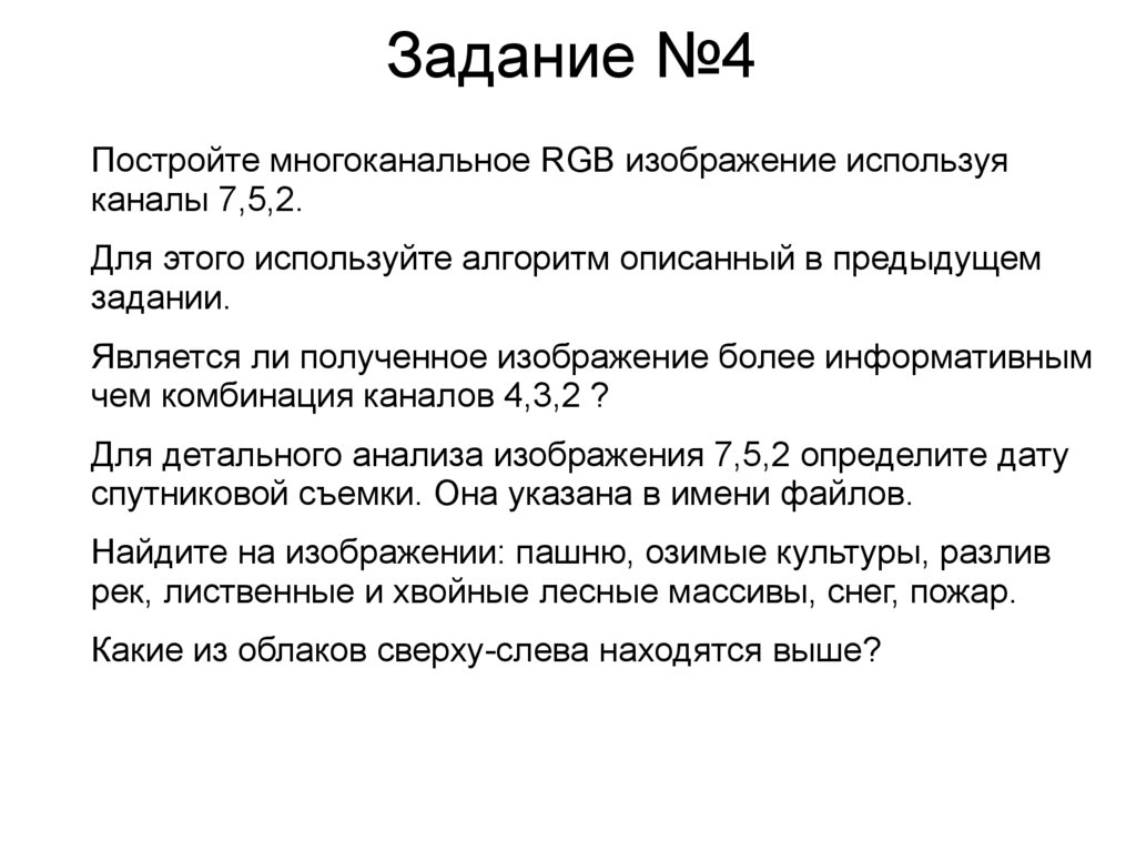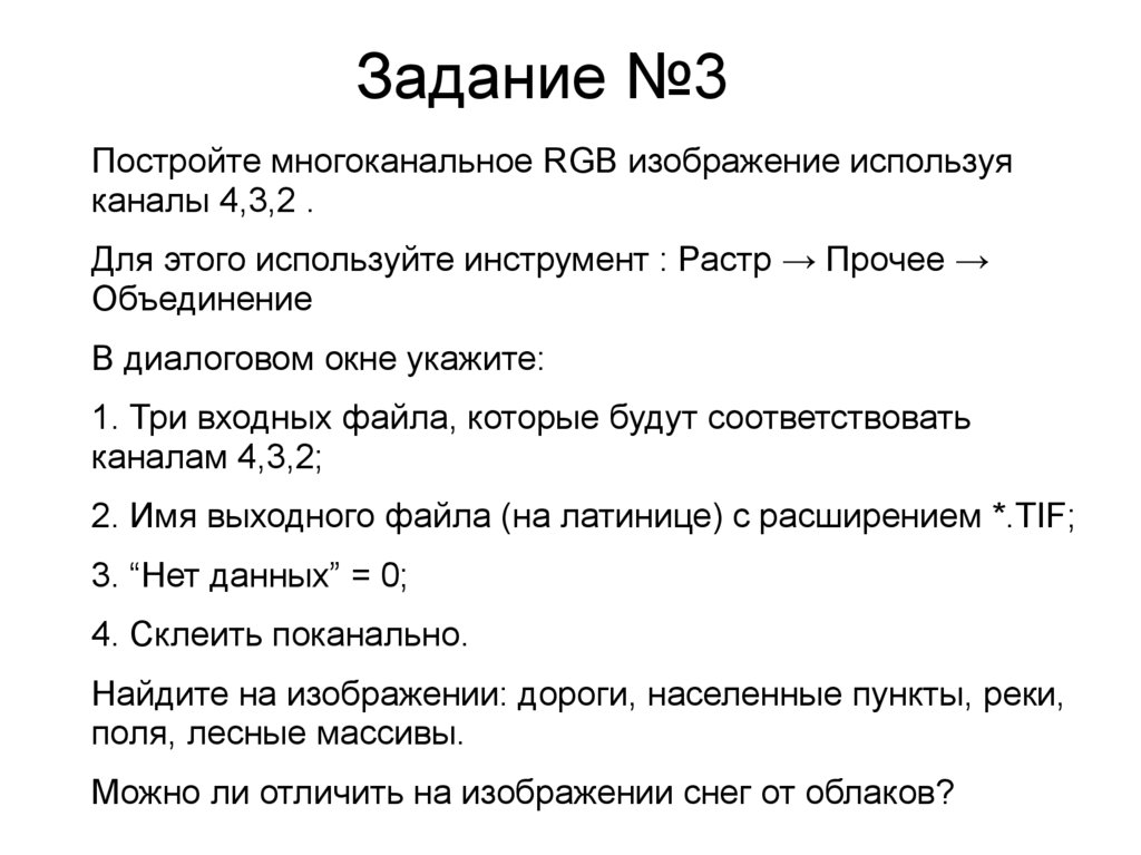 Задание №4Постройте многоканальное RGB изображение используя