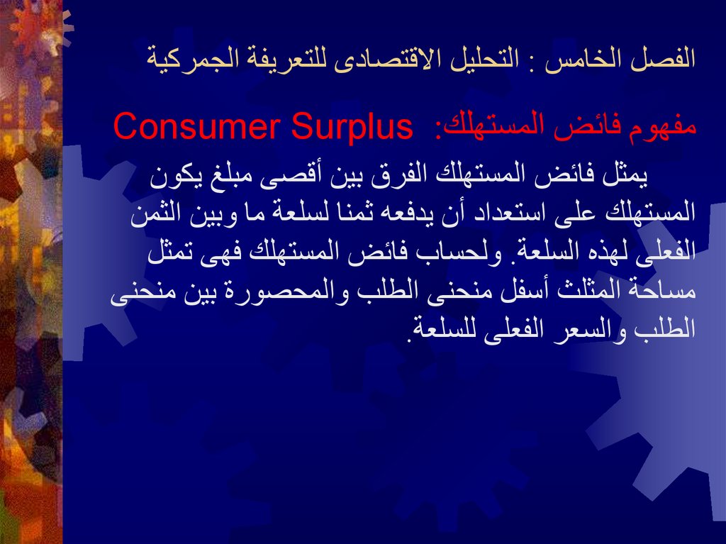 الفصل الخامس :التحليل االقتصادى للتعريفة الجمركيةمفهوم فائض المستهلكConsumer Surplus :