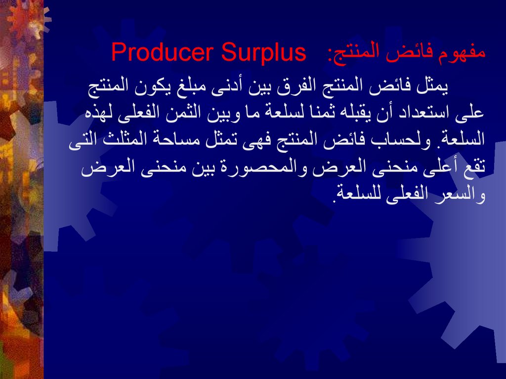 مفهوم فائض المنتجProducer Surplus :يمثل فائض المنتج الفرق بين أدنى مبلغ يكون المنتج
