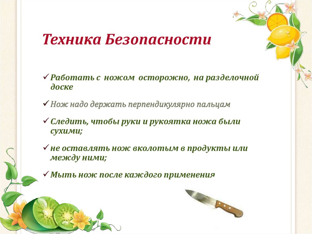 Техника БезопасностиРаботать с ножом осторожно, на разделочной
