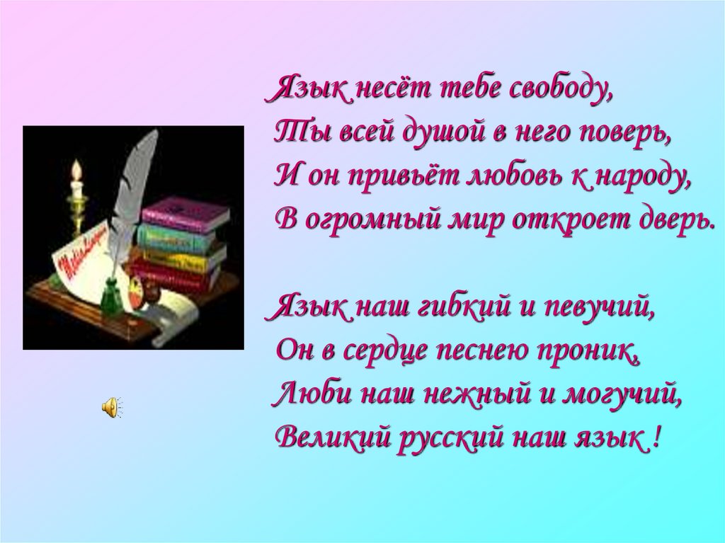 Язык несёт тебе свободу,Ты всей душой в него поверь,