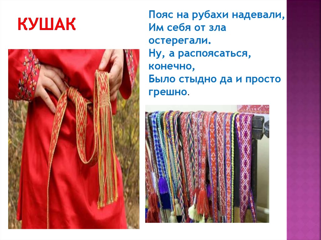 Пояс на рубахи надевали,Им себя от зла