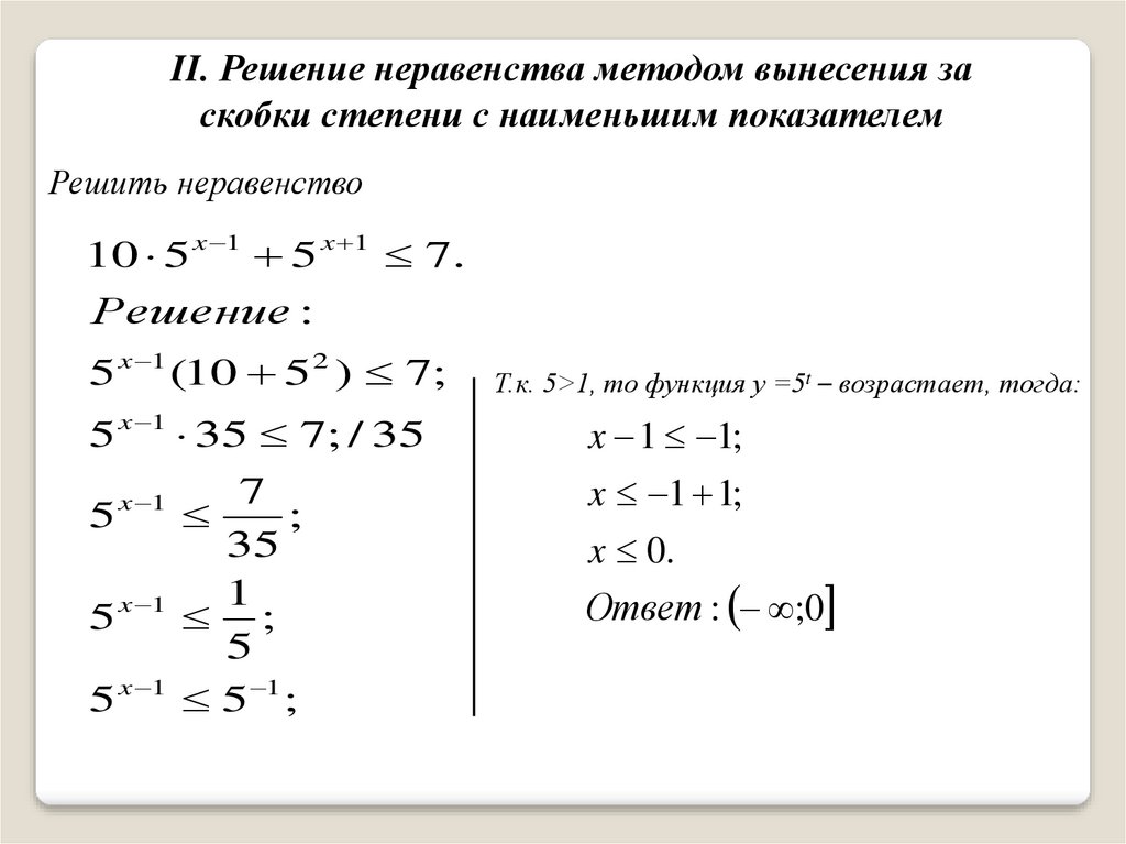 II. Решение неравенства методом вынесения заскобки степени с наименьшим показателем