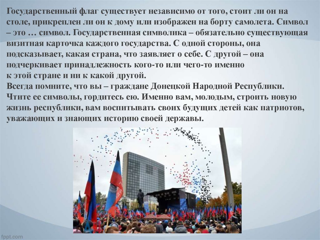 Государственная символика – честь и достоинство каждой державы.Донецкая Народная Республика стоит у истоков своей государственности и