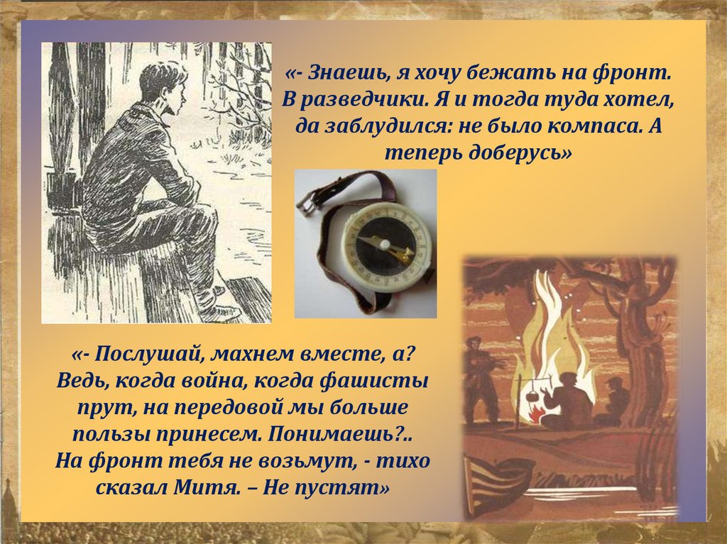 «- Знаешь, я хочу бежать на фронт.В разведчики. Я и тогда туда хотел,