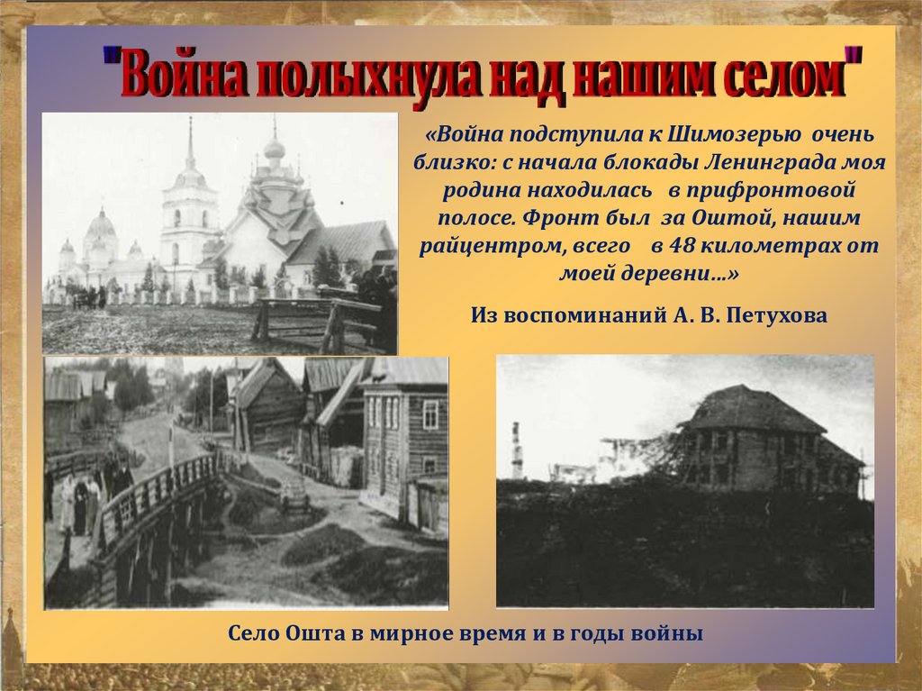«Война подступила к Шимозерью оченьблизко: с начала блокады Ленинграда моя
