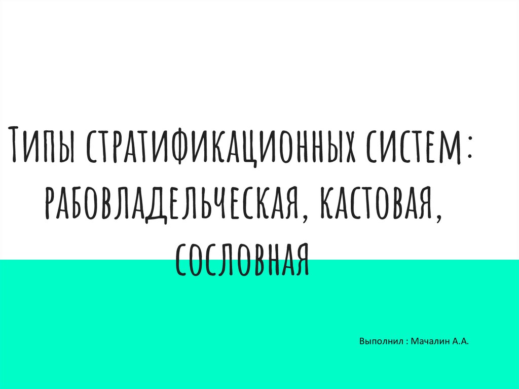 Типы стратификационных систем:рабовладельческая, кастовая,