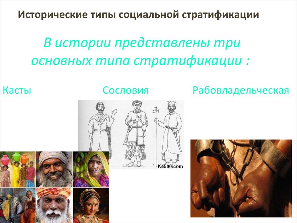 Типы стратификационных систем: рабовладельческая, кастовая, сословная