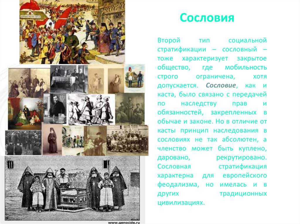 стратификации – сословный –