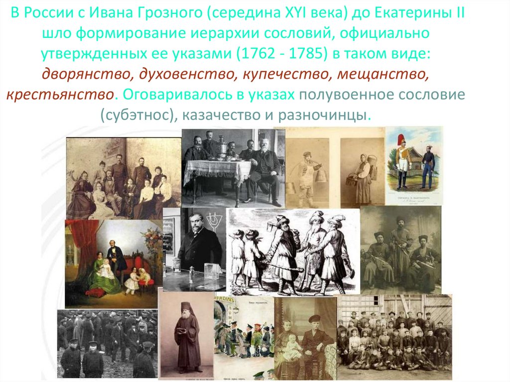 В России с Ивана Грозного (середина ХYI века) до Екатерины IIшло формирование иерархии сословий, официально