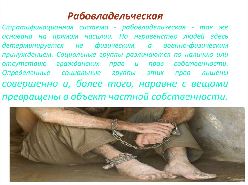 РабовладельческаяСтратификационная система - рабовладельческая - так же