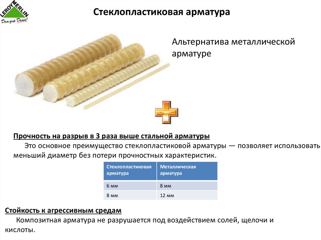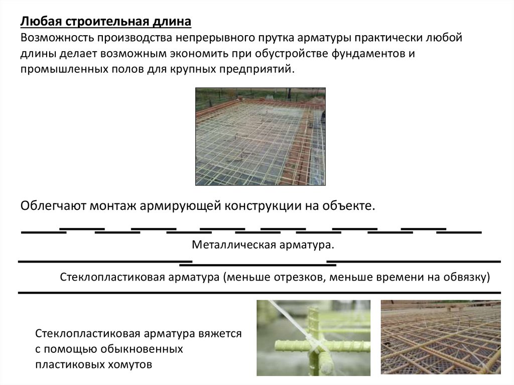 Стеклопластиковая арматура (меньше отрезков, меньше времени на обвязку)