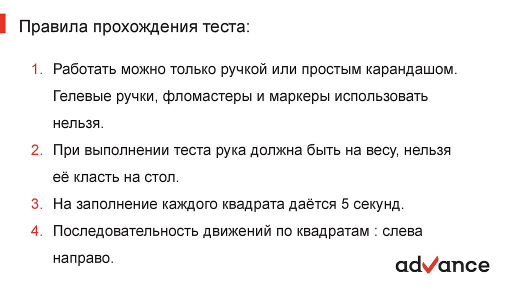 Правила прохождения теста:1. Работать можно только ручкой или простым карандашом.