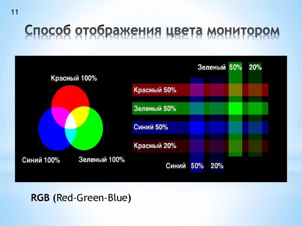 кодом 011? Смешением каких цветов получается голубой цвет?
