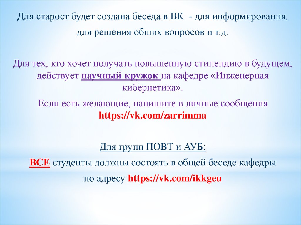 ВСЕ студенты должны состоять в общей беседе кафедры