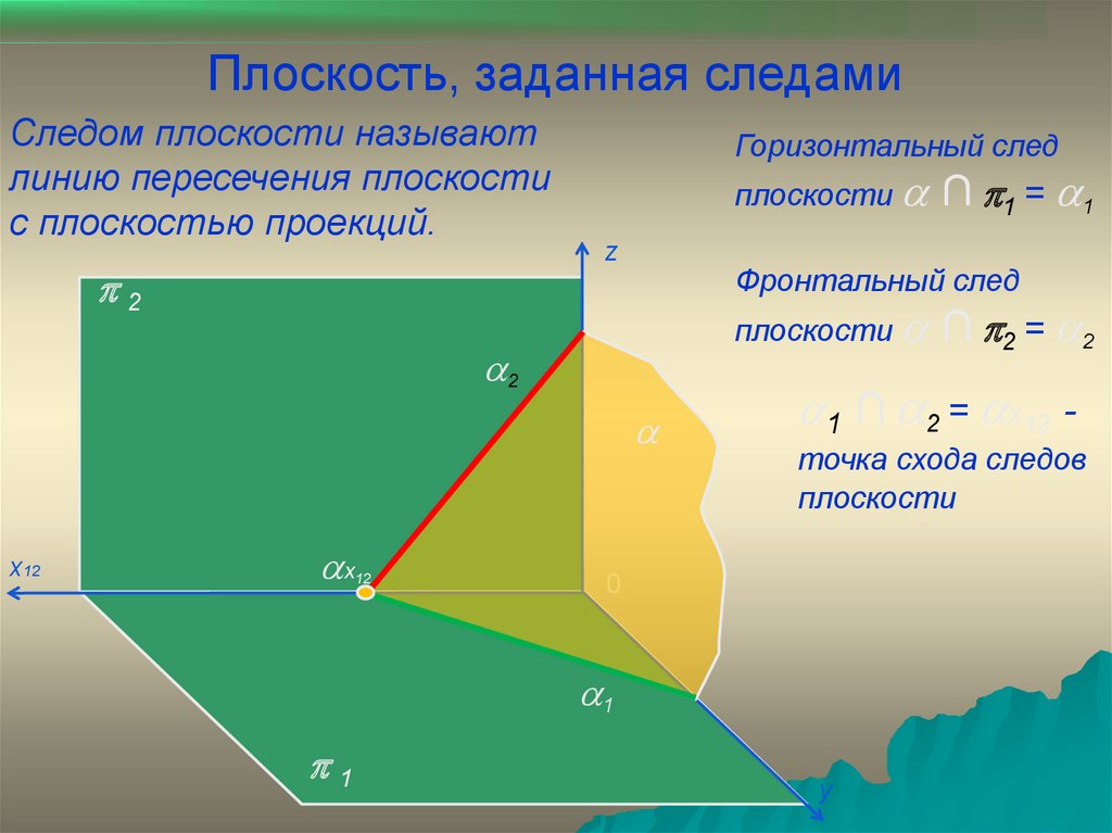 Плоскость, заданная следамиСледом плоскости называют