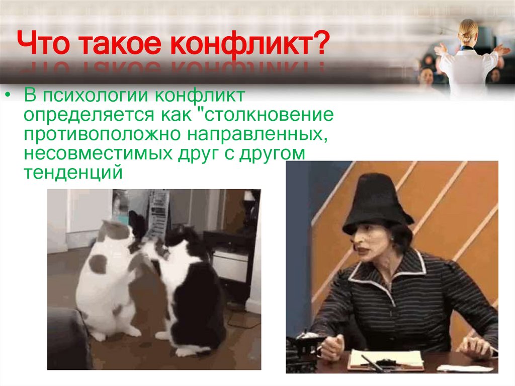 Что такое конфликт?• В психологии конфликт