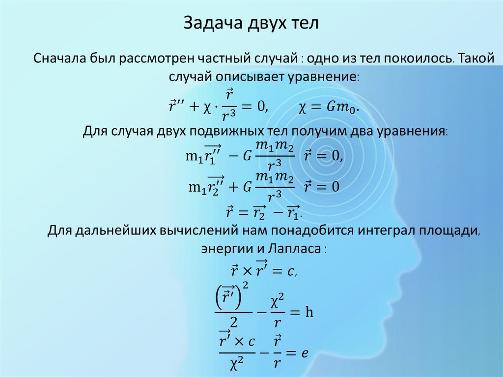 Задача двух телСначала был рассмотрен частный случай : одно из тел покоилось. Такой