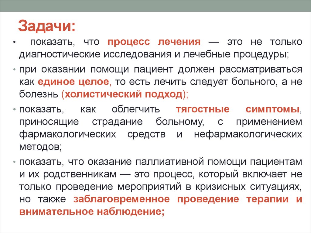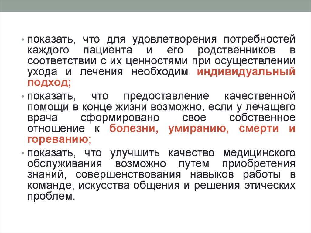 • показать, что для удовлетворения потребностейкаждого пациента и его родственников в