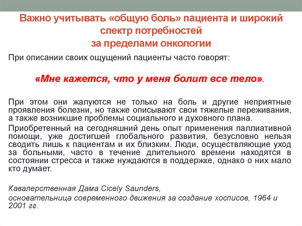 Важно учитывать «общую боль» пациента и широкийспектр потребностей