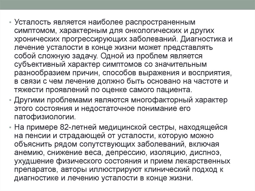 Оценка и ведение тягостных симптомов у паллиативных пациентов