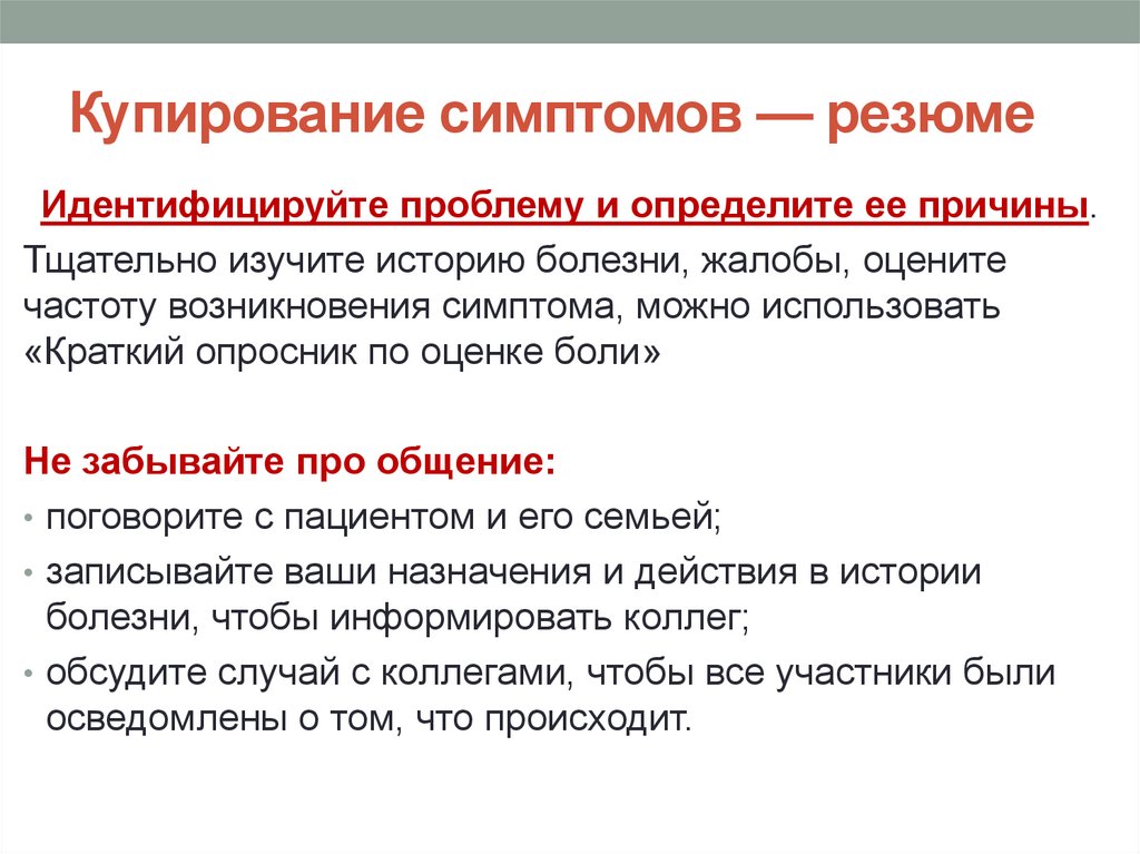 Купирование симптомов — резюмеИдентифицируйте проблему и определите ее причины.