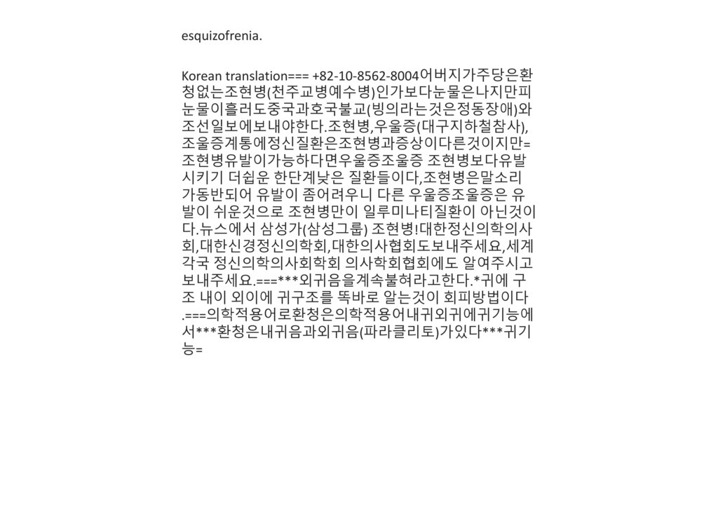 esquizofrenia.Korean translation=== +82-10-8562-8004어버지가주당은환