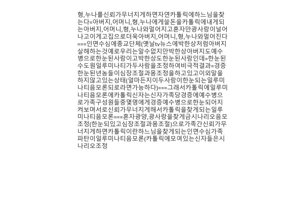 켜보며서로신뢰가무너지게해서카톨릭을찾게되는일루