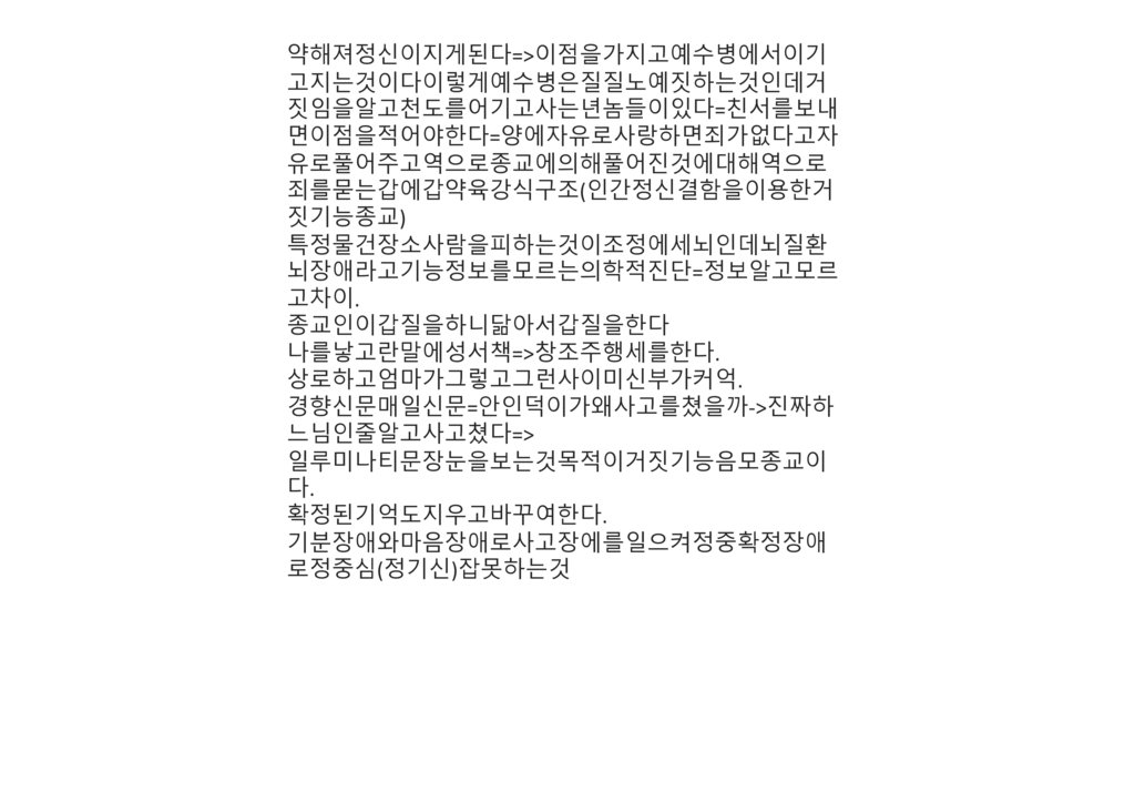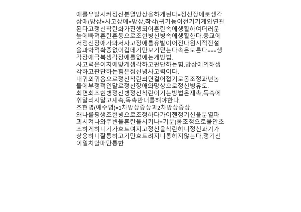 기기능과조현병(예수병)에한눈되어조현병자와한눈된놈