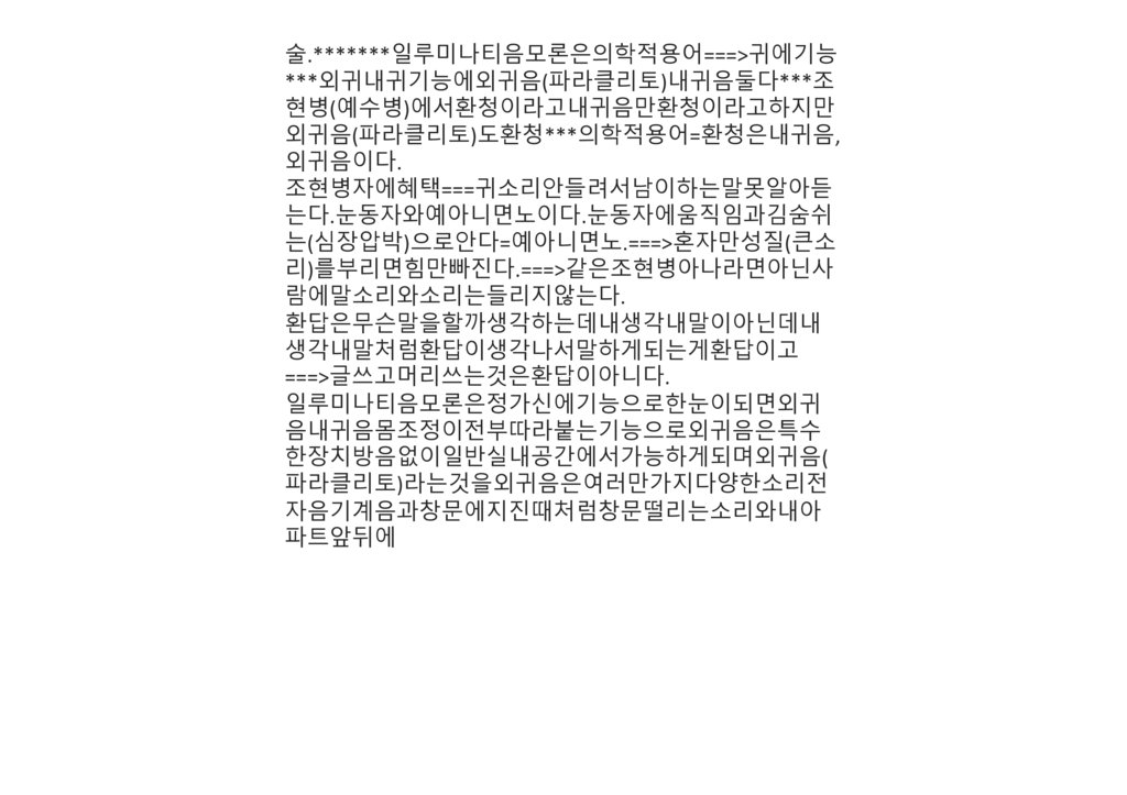 술.*******일루미나티음모론은의학적용어===>귀에기능***외귀내귀기능에외귀음(파라클리토)내귀음둘다***조