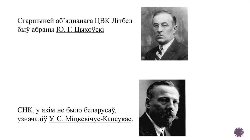 Старшыней аб’яднанага ЦВК Літбелбыў абраны Ю. Г. Цыхоўскі