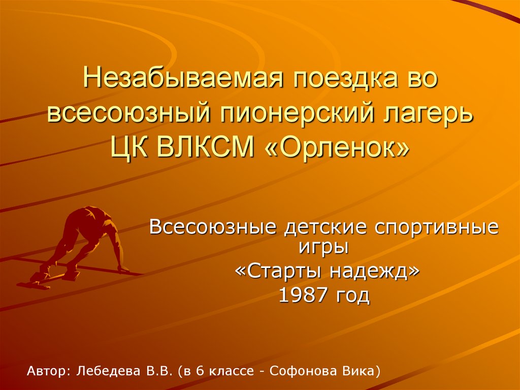 1. Незабываемая поездка во всесоюзный пионерский лагерь ЦК ВЛКСМ «Орленок»