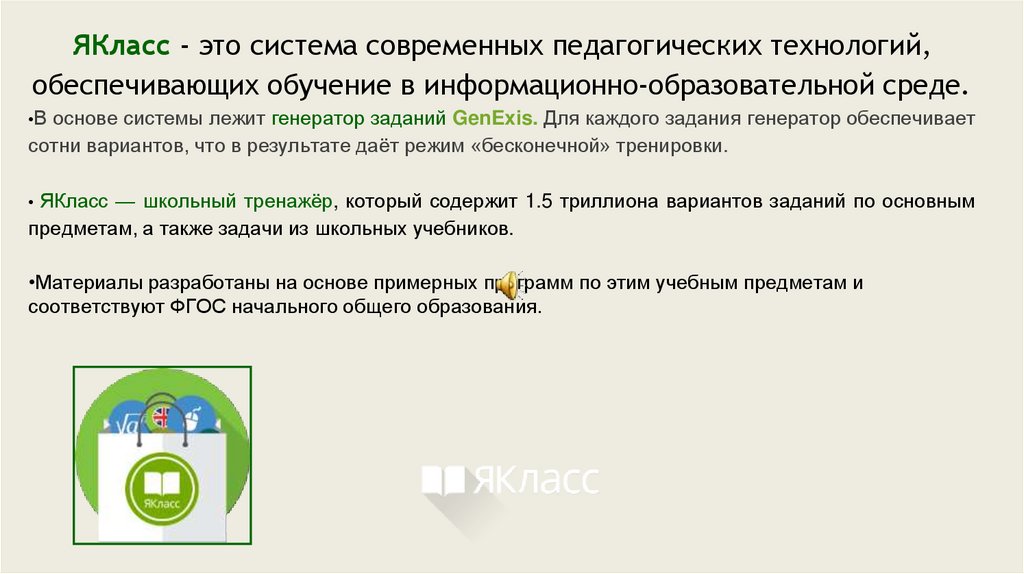 ЯКласс — школьный тренажёр, который содержит 1.5 триллиона вариантов заданий по основным