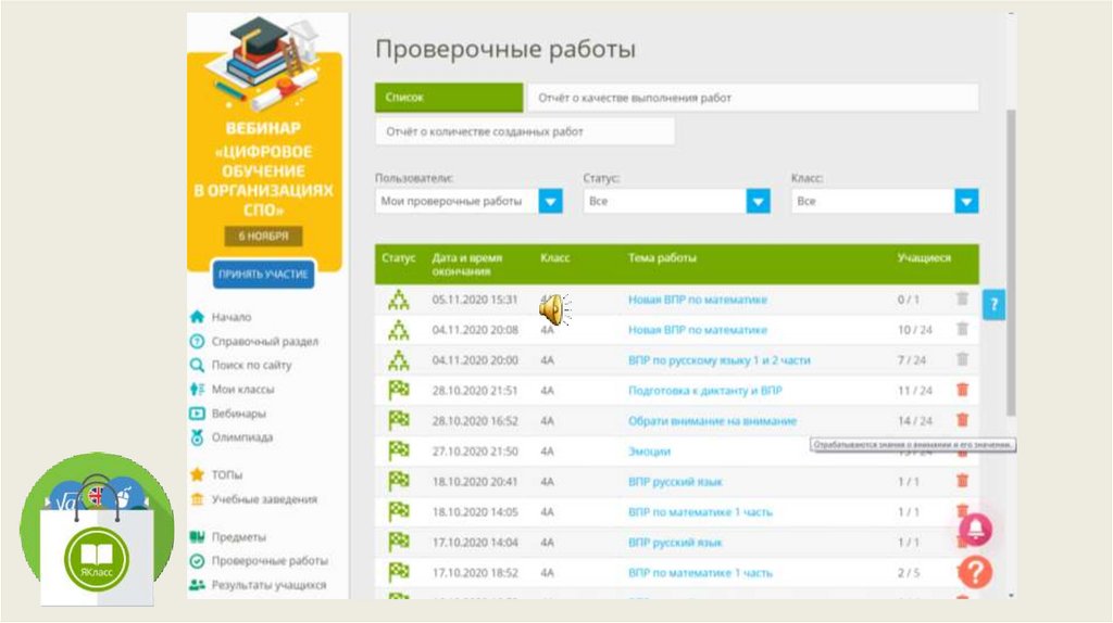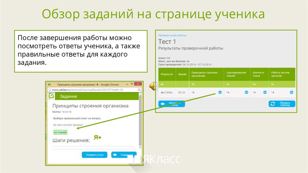 Обзор заданий на странице ученикаПосле завершения работы можно