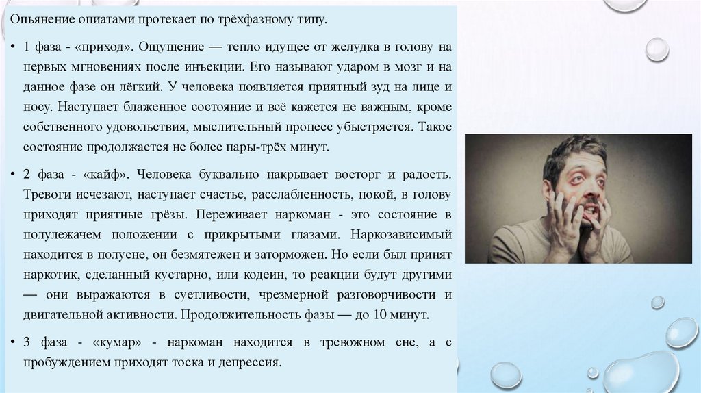 приходят приятные грёзы. Переживает наркоман - это состояние в