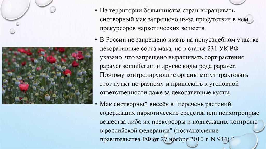 декоративные сорта мака, но в статье 231 УК.РФ